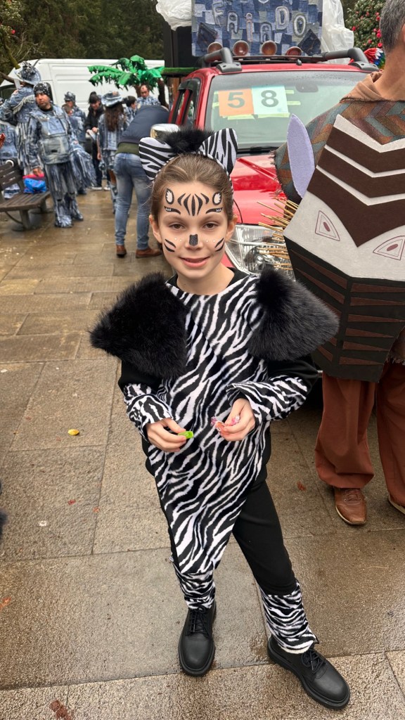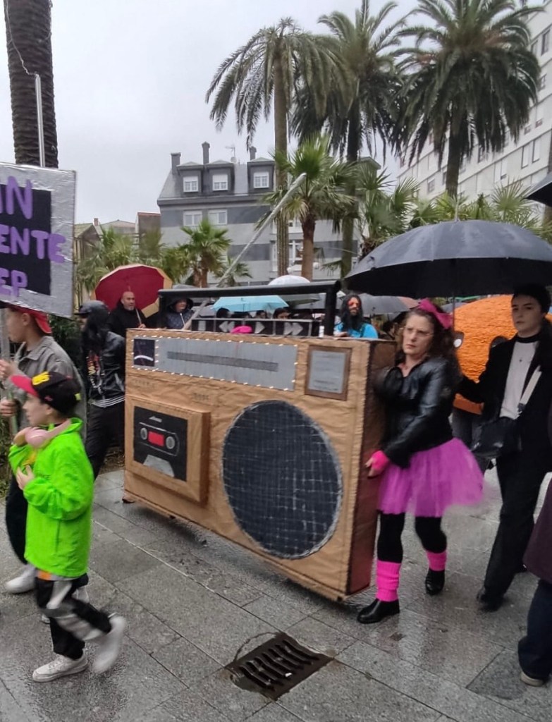 Hubo momentos en los que la lluvia arreció y amenazó con estropear maquillajes y doblar decorados. Pero bastaba con que la música subiera de volumen para que los pasos retomaran su firmeza. Niños con el rostro pintado sostenían bolsas de caramelos; padres y madres ajustaban capas empapadas; vecinos se reconocían tras máscaras elaboradas. El desfile no perdió ritmo: ganó carácter.