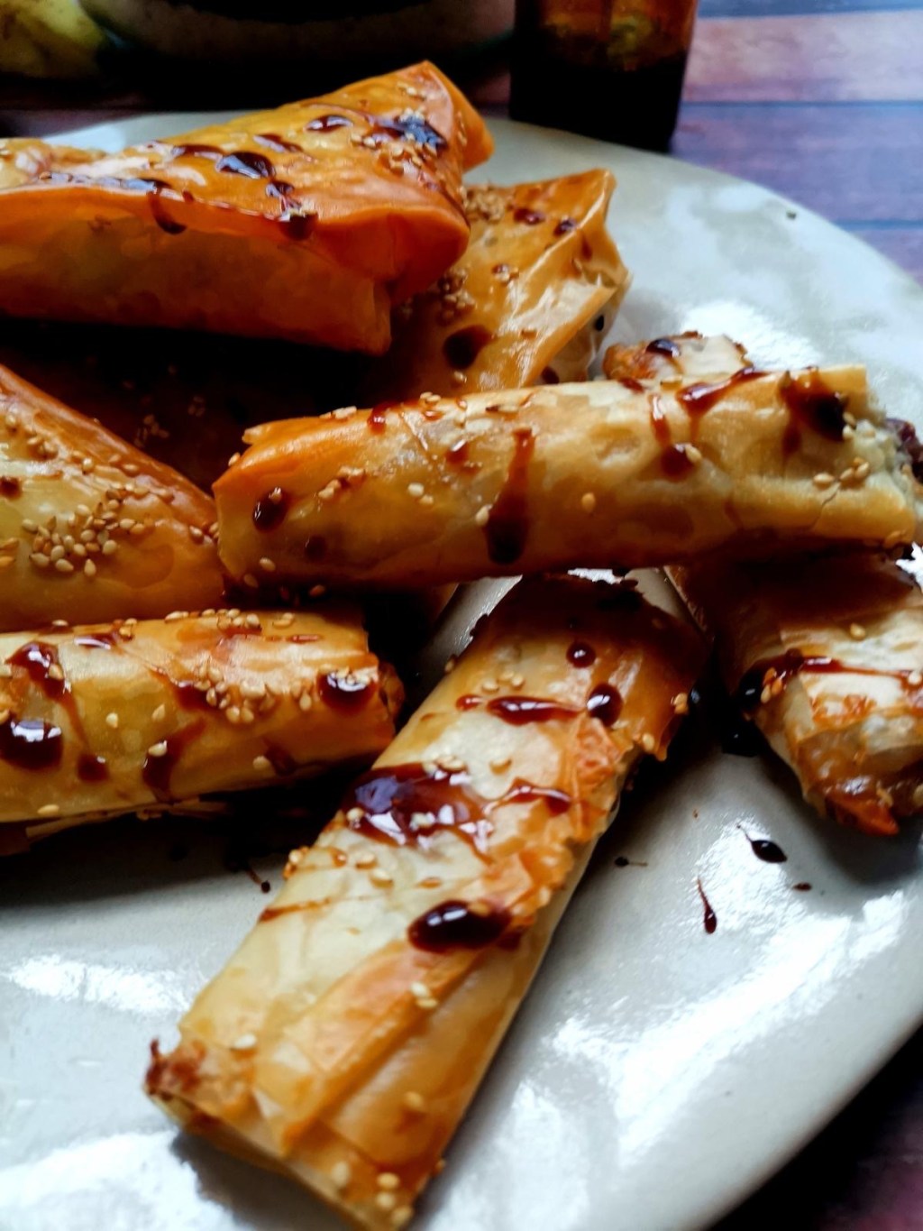 Una vez cerradas, se vuelven a pincelar por fuera con mantequilla y se espolvorean por encima semillas de sésamo, que añaden un matiz visual y de sabor. Finalmente, se introducen en el horno, precalentado a 180 grados, durante unos 15 minutos, o hasta que la masa adquiera un tono dorado y una textura crujiente.