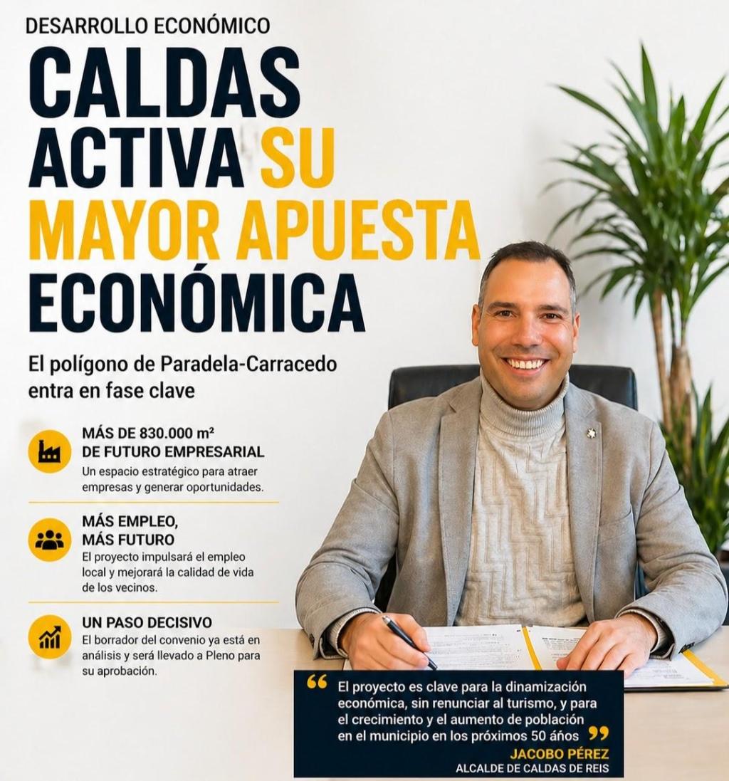 Caldas de Reis comienza a dibujar uno de los proyectos más determinantes de su historia reciente. El Concello ha recibido el borrador del convenio para el desarrollo del polígono industrial de Paradela-Carracedo, un paso administrativo que, aunque técnico, abre la puerta a una transformación profunda del modelo económico local.